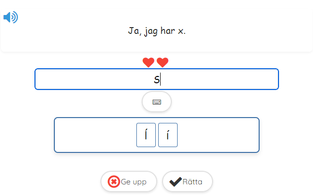 När någon uppgift i en spelomgång innehåller specialtecken som inte finns på det svenska tangentbordet (som é, ñ, ü, ç eller andra symboler) visas nu automatiskt en tangentbordsknapp bredvid textfältet på alla uppgifter. När eleverna klickar på knappen får de upp en panel med alla specialtecken som behövs för just den spelomgången.